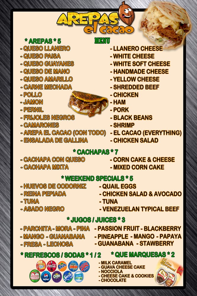 Arepas El Cacao Menu